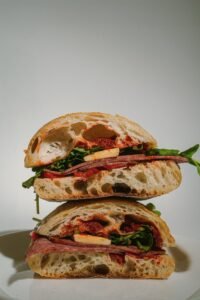 Yarım ekmek içinde hindi füme, Manyas peyniri, domates (Sadece çocuklar için)